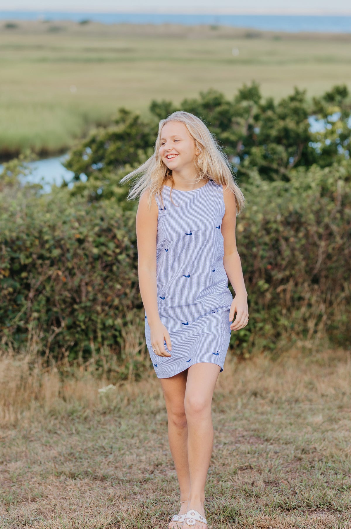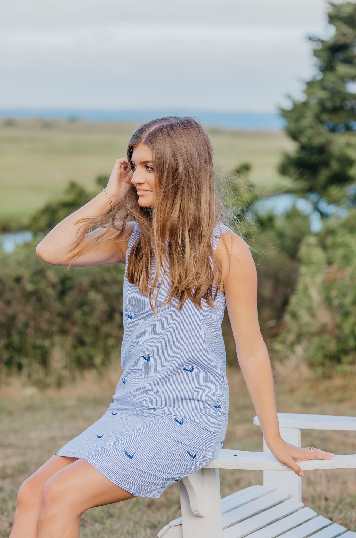 The one dress to pack for your Nantucket summer vacation. Fully lined embroidered seersucker, this classic shift style can take you from brunch, to shopping on Main Street, right to the clambake on the beach in comfort and style. You may need more than one!