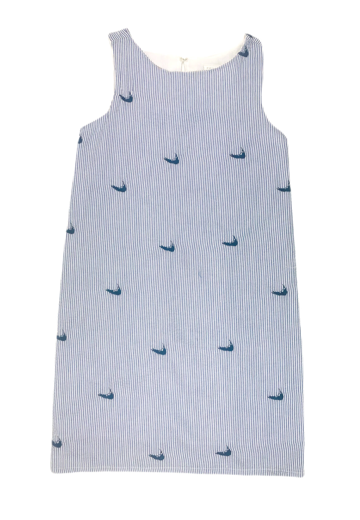 Blue Seersucker Women's Dress with Navy Embroidered Nantuckets