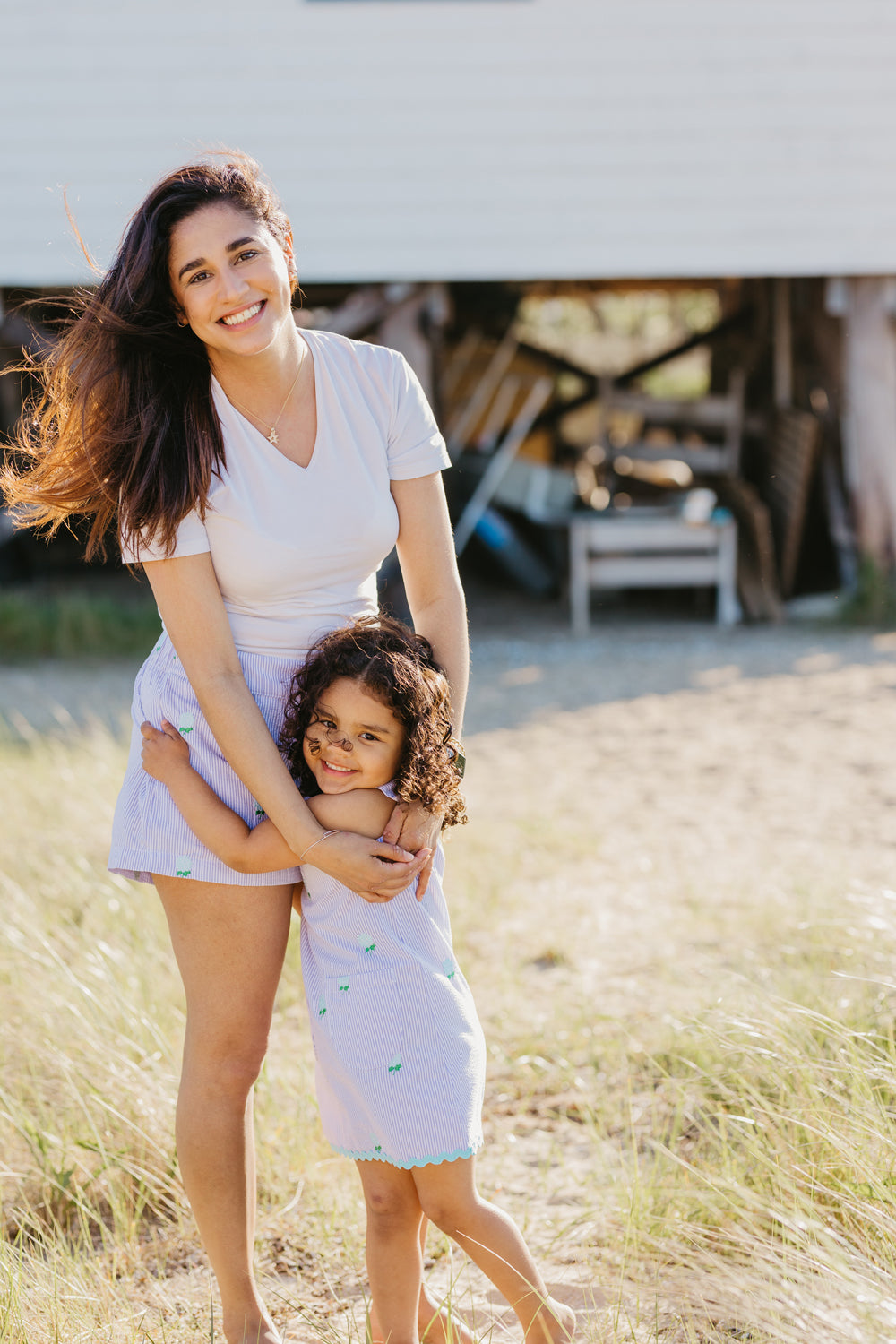A classic shift dress in lilac and white striped seersucker with blue embroidered hydrangeas, and ricrac trim! Button in back, 100% cotton, machine wash and dry on low.