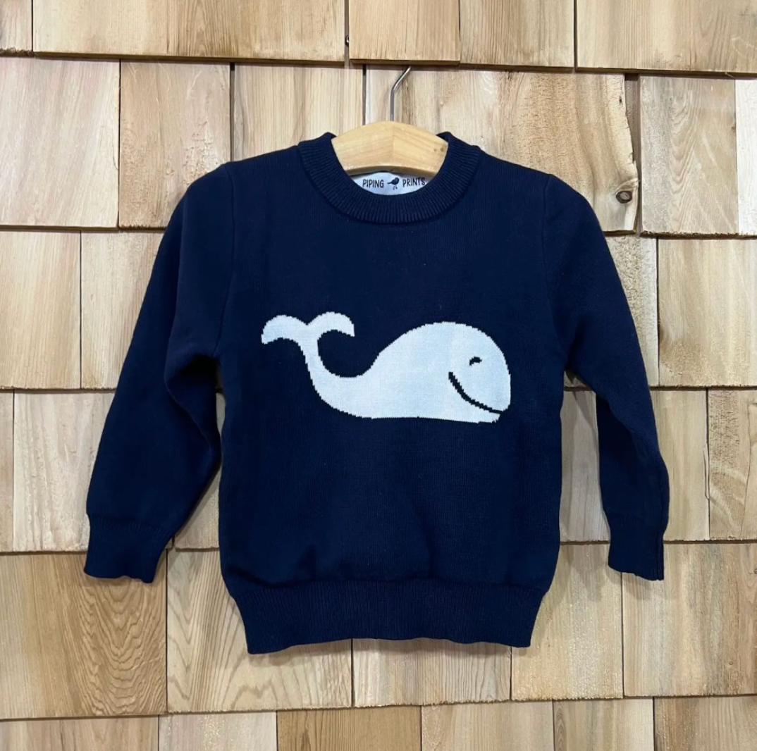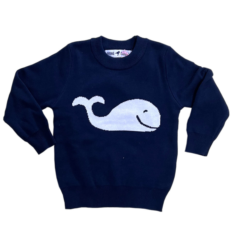 Navy Whale Cotton Crewneck Kids Sweater