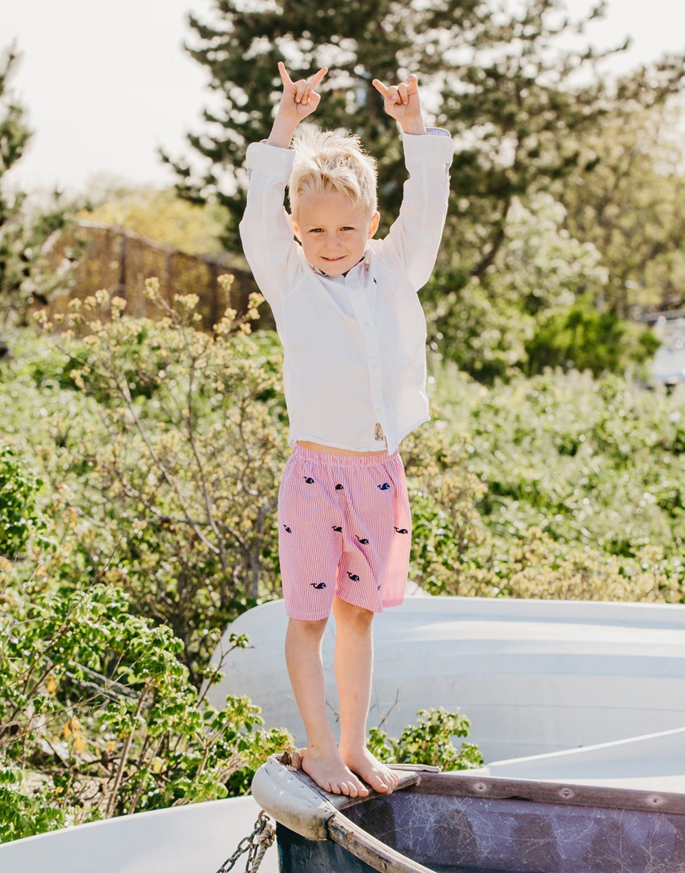 Our fun and fancy-free embroidered seersucker kids shorts - for boys and girls from infant through size 6. Classic preppy style that's comfy enough for play and school!