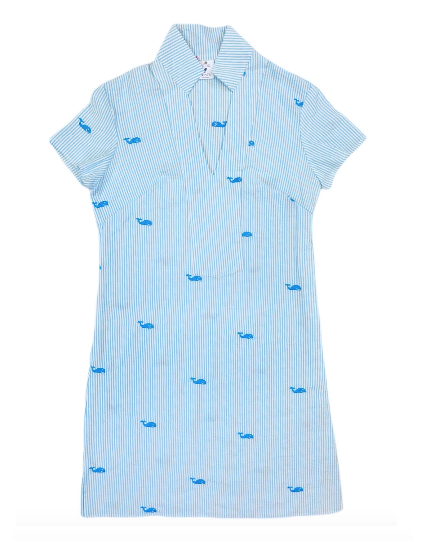 Turquoise Seersucker with Whales Ladies Tunic Dress (Unlined)