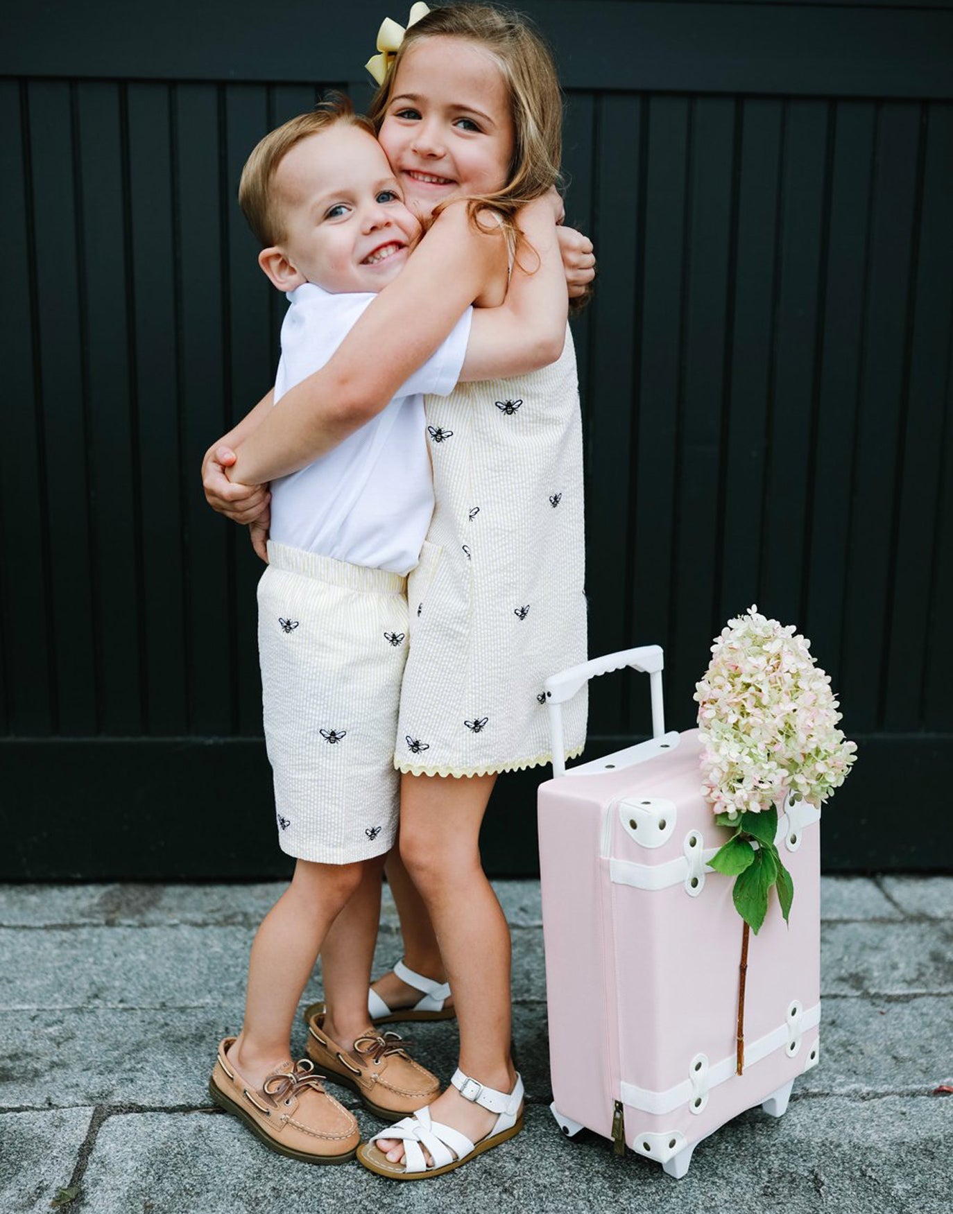 Kids Yellow Seersucker Shorts with Embroidered Honeybees