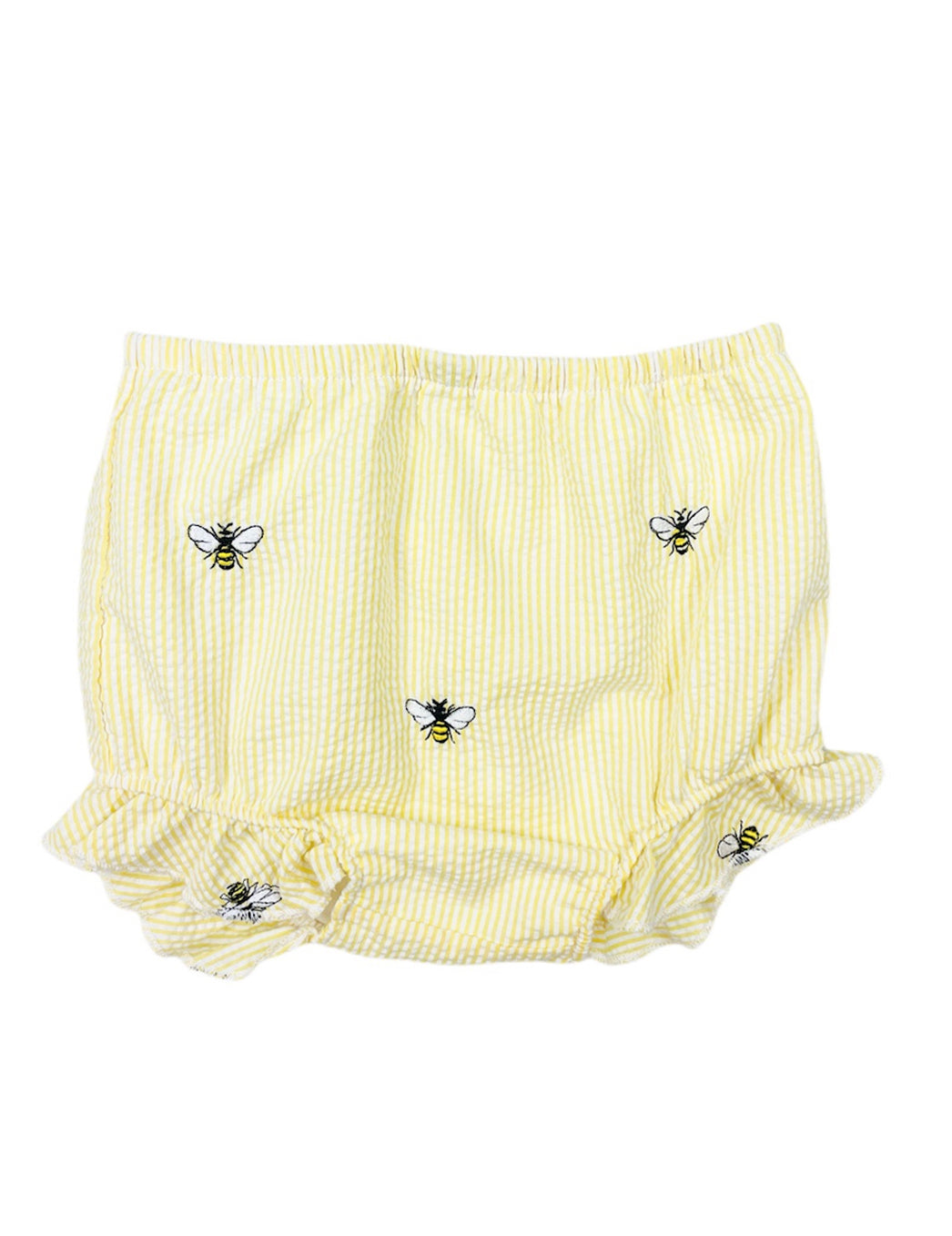 Yellow Seersucker Baby Bloomers with Embroidered Bees
