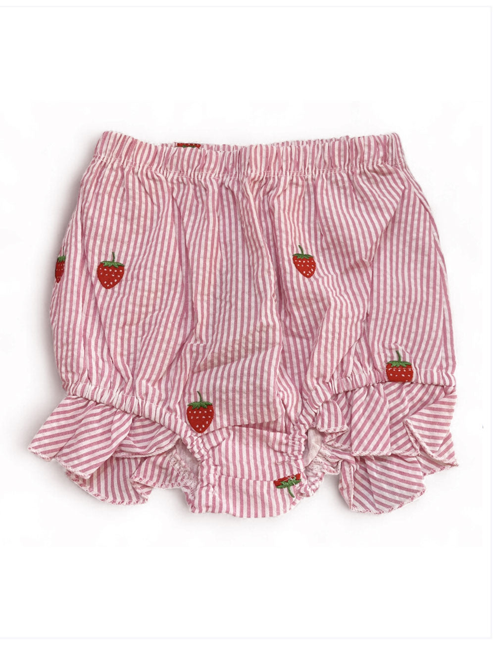 Hot Pink Seersucker Baby Bloomers with Embroidered Strawberries